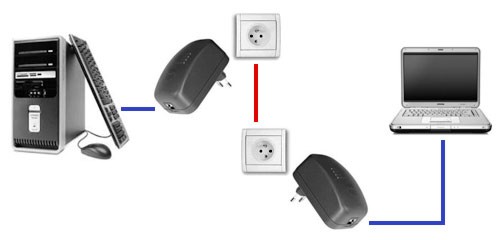quelques applications du courant porteur 3/3 Ce cas de figure est le plus utilisé, il met en réseau 2 ordinateurs